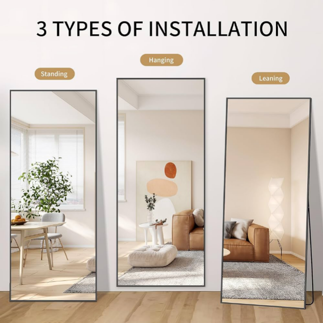 Not only do our mirrors serve a practical purpose, but they also act as striking decor elements. They can be leaned against a wall, mounted securely, or even hung on a door, making them a versatile addition to any room.